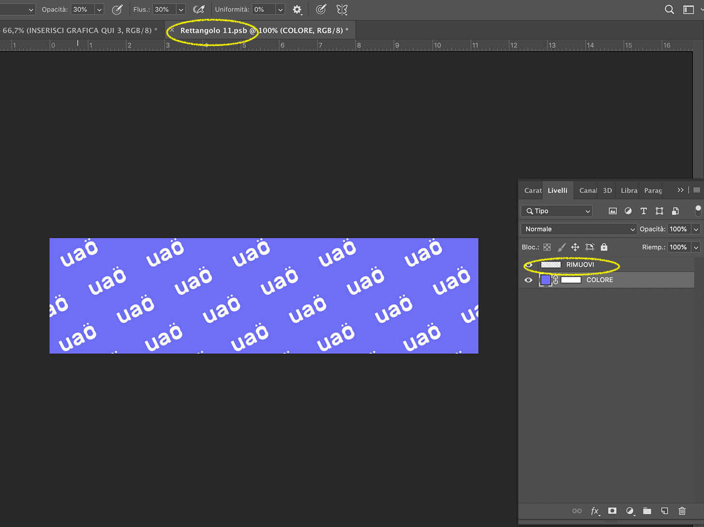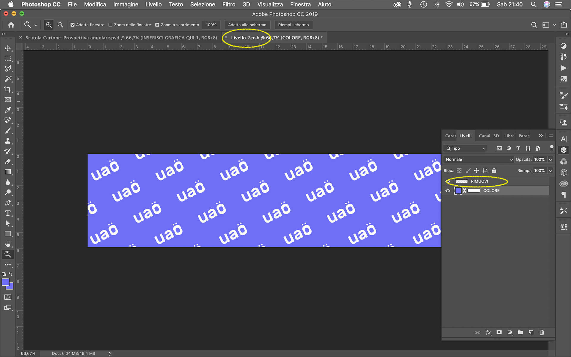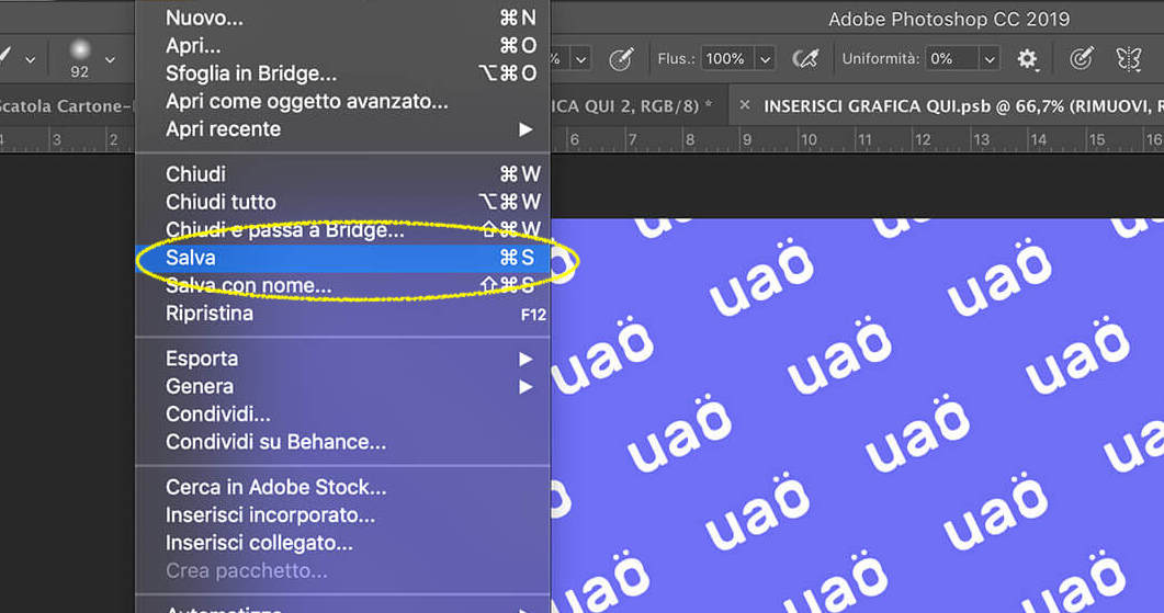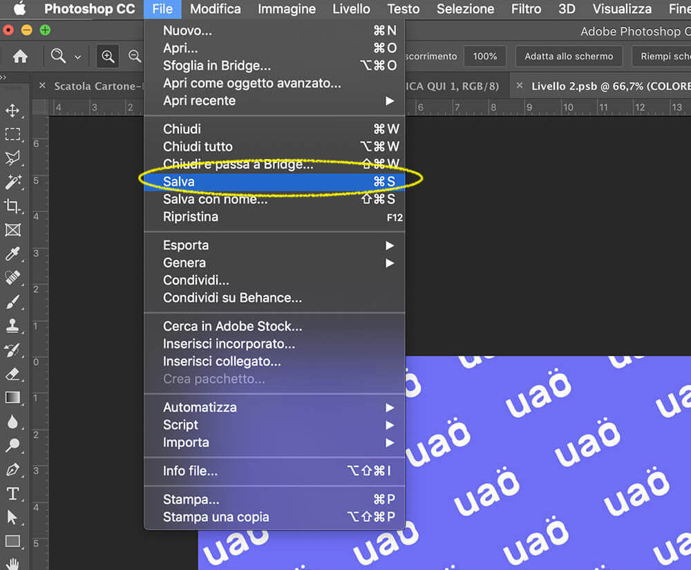 6. Adesso clicca su Salva oppure usa la combinazione di tasti CTRL+S (Win) o CMD+S (Mac) e poi chiudi la finestra Livello 2.psb.